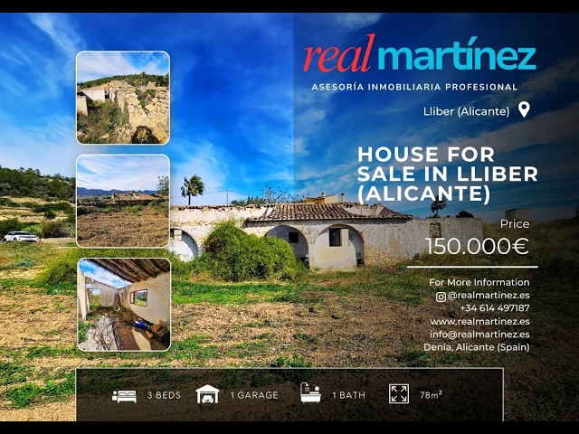 🏡 Casa en Ruinas con Parcela Rústica en Llíber – Oportunidad ÚnicaSe vende casa en ruinas de 78 m² situada en una parcela rústica de 2.244 m² en Camino La Balsa, nº 16, Llíber (03729, Alicante).Rodeada de un entorno natural idílico en la Vall de Pop, esta propiedad ofrece una oportunidad excepcional para construir la casa de campo mediterránea de tus sueños o rehabilitar una finca con carácter tradicional.📍 Ubicación y entornoSituada en el corazón del interior de la Costa Blanca Norte, entre Jávea y Dénia, a aproximadamente 30 min en coche de las playas de ambos municipios y de sus servicios costeros. El municipio de Llíber, con su encanto tradicional, calles empedradas y paisaje de viñedos, ofrece un estilo de vida tranquilo pero bien conectado. 🌞 Clima y calidad de vidaLlíber disfruta de un clima mediterráneo suave, con veranos largos y soleados, invierno templado y precipitaciones moderadas, ideal para vida al aire libre, cultivo de viñedos y jardines mediterráneos. 📜 Historia y culturaLa zona cuenta con tradición agrícola y vitivinícola (producción de moscatel y pasas) y un pueblo con raíces que se remontan a épocas históricas. Pasear por Llíber es recorrer calles llenas de flores, tradiciones y festividades locales que conservan vivos los valores culturales del interior mediterráneo. 🌿 Ventajas de la Propiedad✅ Parcelación amplia (2.244m²) — espacio suficiente para casa principal, piscina, huerto, jardín mediterráneo o espacio recreativo.✅ Vistas panorámicas del valle y entorno natural.✅ Potencial de rehabilitación total: posibilidad de diseñar casa a medida (residencia principal, segunda residencia o proyecto turístico).✅ Cercanía a servicios rurales, tiendas locales y naturaleza.✅ A menos de 30 min de playas galardonadas, deportes náuticos y ocio costero.✅ Buen acceso por carretera desde la N-332 y proximidad a núcleos importantes. 🛠️ Potencial del ProyectoEsta propiedad es ideal para: ✨ Reconstruir una finca tradicional mediterránea respetando la arquitectura local.✨ Crear una villa con estilo rústico moderno con piscina y vistas al valle.✨ Inversores: proyecto de turismo rural, alojamiento con encanto o alquiler vacacional.✨ Amantes de la naturaleza, el vino, y el estilo de vida tranquilo pero con fácil acceso a servicios urbanos.📌 ResumenCasa en ruinas con gran potencial de rehabilitación, situada en una parcelas rústica generosa en el atractivo entorno de Llíber, con excelente clima, cultura mediterránea, proximidad a playas y excelente calidad de vida. Ideal tanto para proyectos personales como turísticos o de inversión.