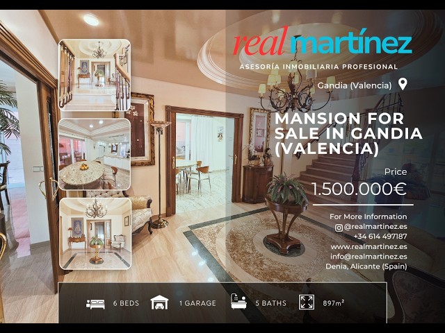 En pleno corazón de Gandía, se presenta una propiedad verdaderamente excepcional: un majestuoso palacete de estilo neoclásico que combina elegancia atemporal, amplitud y el máximo confort moderno. Con cerca de 900 m² construidos distribuidos en cuatro plantas, esta residencia ofrece un equilibrio perfecto entre distinción arquitectónica y funcionalidad contemporánea.